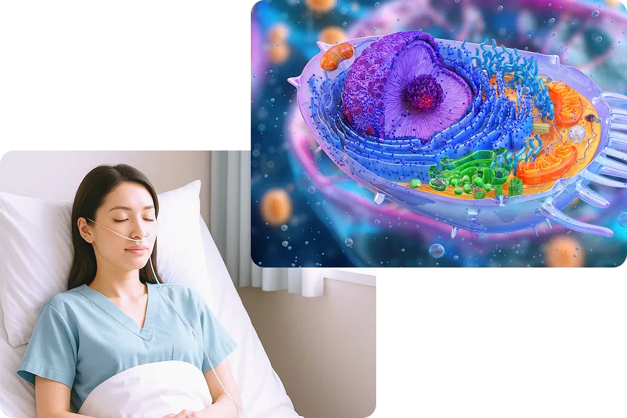 水素ガスはミトコンドリア活性化因子であるPGC-1を活性化することが報告されています。また、がん患者様の予後不良に関与している疲弊CD8+T細胞のミトコンドリア機能不全を改善して疲弊CD8+T細胞を再活性化することでがん患者様の予後改善に寄与します。がん細胞が体内の免疫にブレーキをかけている状態を阻害し、免疫細胞をふたたび活性化することが臨床試験で判明しています。